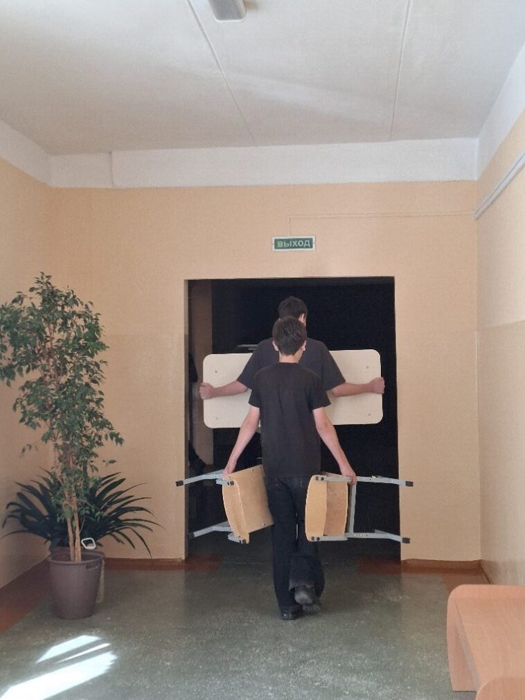 Кроме того, ребята приняли участие в трудовой практике, где занимались переносом парт и стульев, подготавливая кабинеты к новому учебному году.