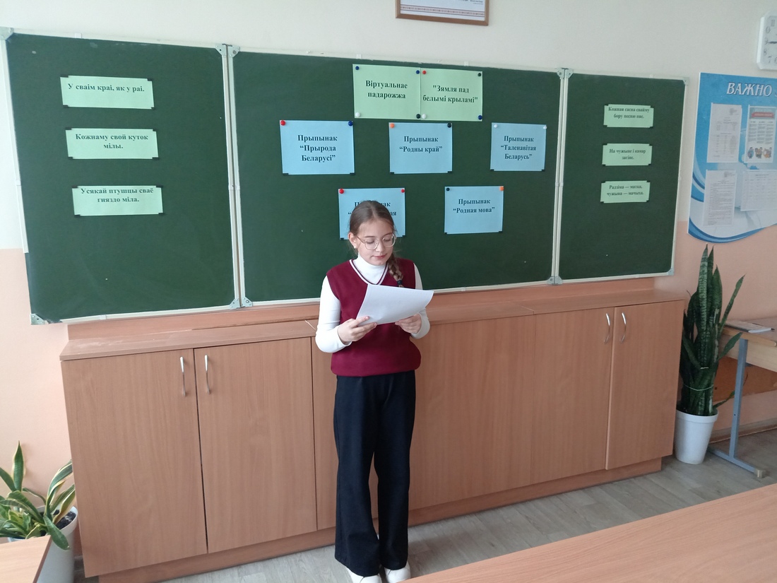 Другога кастрычніка вучні 5 “А” класа ўсё ж такі адправіліся ў падарожжа.Такую магчымасць яны атрымалі ў беларускі чацвер. Канешне ж, падарожжа было віртуальнае, але гэта мела і шэраг пераваг. Дзеці змаглі зірнуць на Беларусь з вышыні птушынага палёту, убачыць яе абуджэнне вясной, красаванне летам, багацце восенню і ціхі сон зімою. Удзельнікі зазірнулі ў самыя аддаленыя куточкі нашай краіны, пабачылі палацы, цэрквы, касцёлы, адметныя будынкі і пераканаліся ў тым, што падарожжы па нашай краіне вельмі цікавыя і пазнавальныя.
