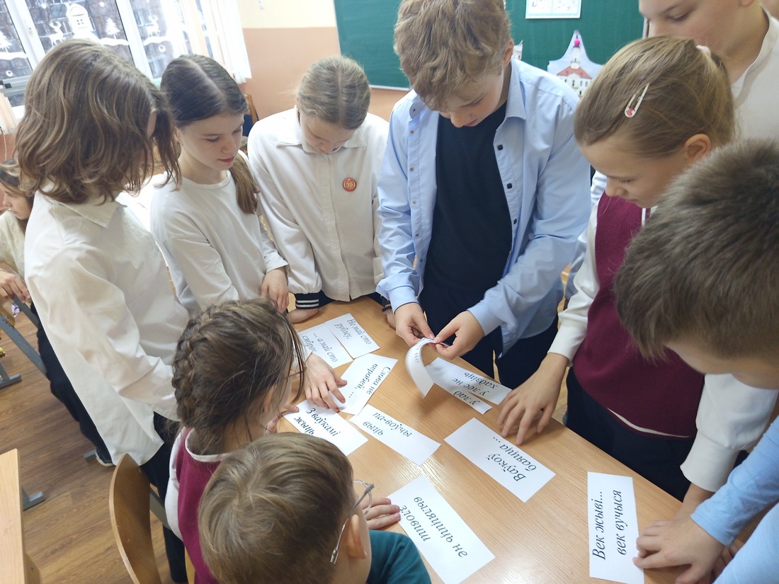 27 лістапада вучні 6 “Г” класа яшчэ раз пераканаліся ў гэтым, прыняўшы ўдзел у моўным турніры “Сябруем з родным словам”. Дзеці прадэманстравалі веданне беларускай міфалогіі, прымавак, прыказак, казак і фразеалагізмаў. Удзельнікі дзівіліся назіральнасці, кемлівасці і дасціпнасці простых людзей, якія пакінулі нам такую багатую спадчыну.