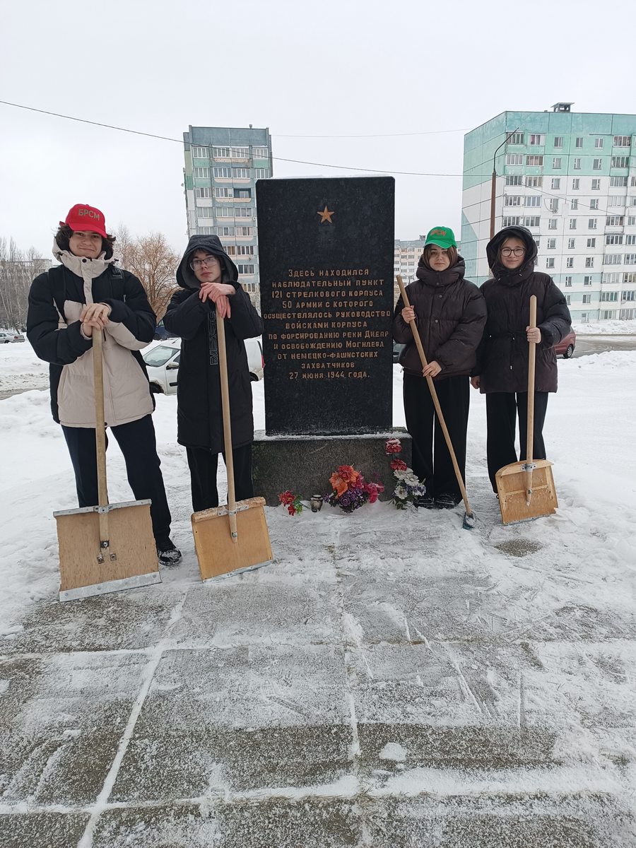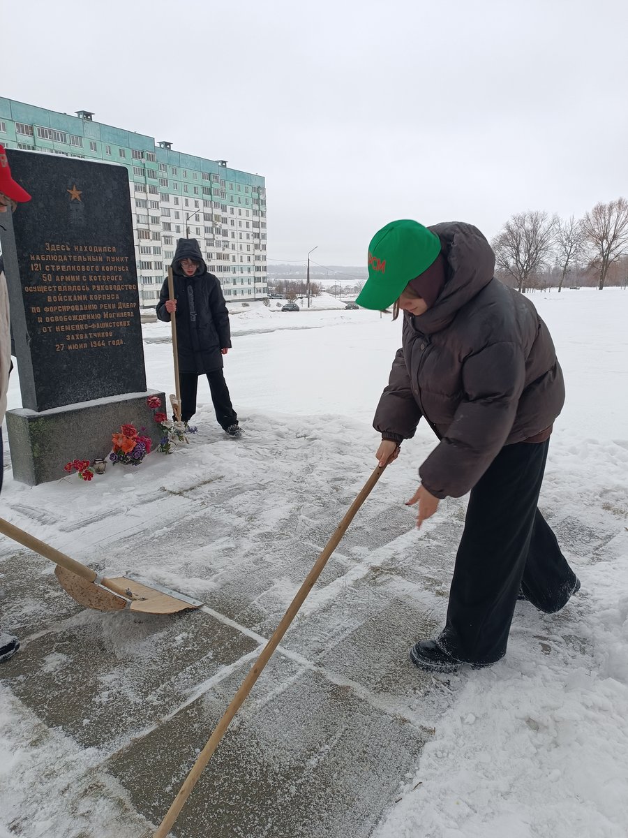 27.01 активисты БРСМ провели акцию по уборке снега возле памятного знака в честь героев Великой Отечественной войны. Благодаря усилиям молодых патриотов, монумент вновь предстал перед жителями города в своем величественном облике.