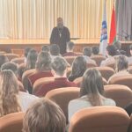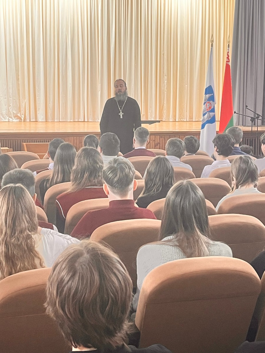 У учащихся 8-9 классов состоялся откровенный разговор со священником Спасо-Преображенского Собора отцом Николаем Антоновым. Затрагивались вопросы уважения и самоуважения, личностного становления, воспитания терпимости, толерантности в отношении окружающих людей, нравственной ответственности за стиль общения со сверстниками, родителями, педагогами. У ребят была возможность поразмышлять над библейской заповедью «возлюби ближнего своего как самого себя», о проявлении заботы, внимания, щедрости к другим людям.