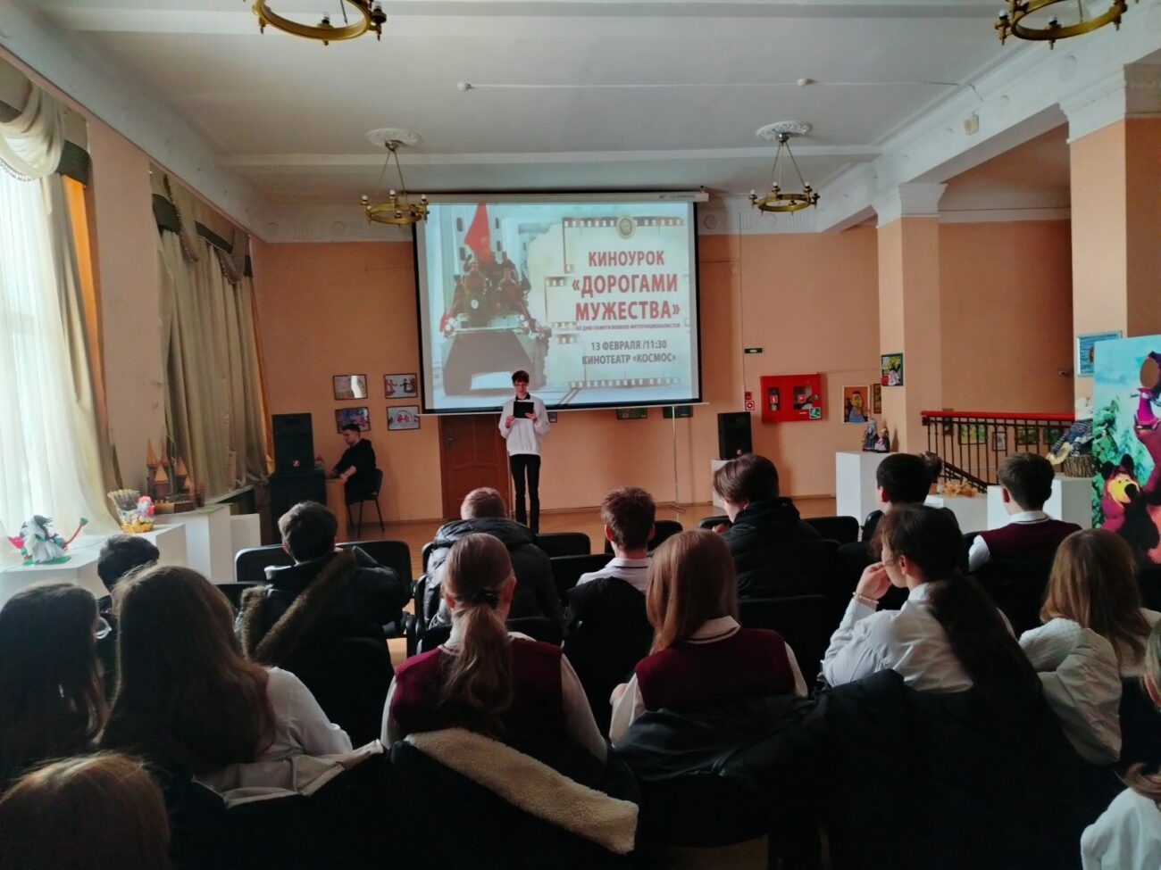 Руководитель по военно-патриотическому воспитанию Ковалева А.Ф. предложила восьмиклассникам посетить киноурок «Дорогами мужества» с просмотром и обсуждением фильма «Афганистан. Я помню» в кинотеатре «Космос».