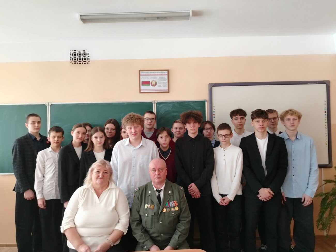 Член общественного объединения «Белорусский союз ветеранов войны в Афганистане», член Белорусского союза офицеров, капитан милиции в запасе Сафонов Юрий Владимирович посетил информационный час «Помним и гордимся» в 9 «Б» классе.
