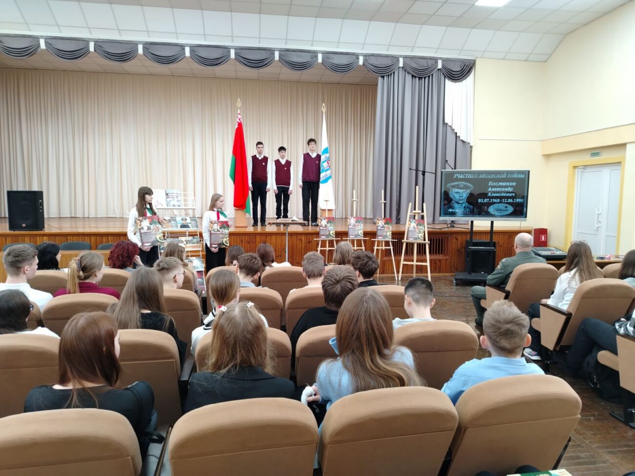 Руководитель по военно-патриотическому воспитанию Ковалева А.Ф. проинформировала старшеклассников о том, какая работа ведется в Республике Беларусь по увековечению памяти погибших при выполнении интернационального долга в Афганистане.