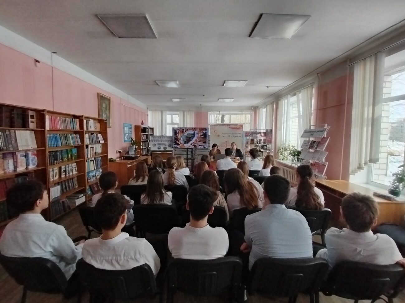 Перед восьмиклассниками выступила сотрудник библиотеки Вигилей Валентина Александровна. Она рассказала учащимся о причинах начала советского военного присутствия в Афганистане.