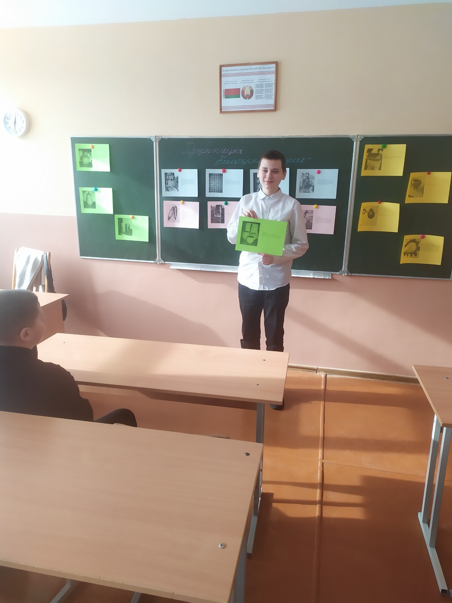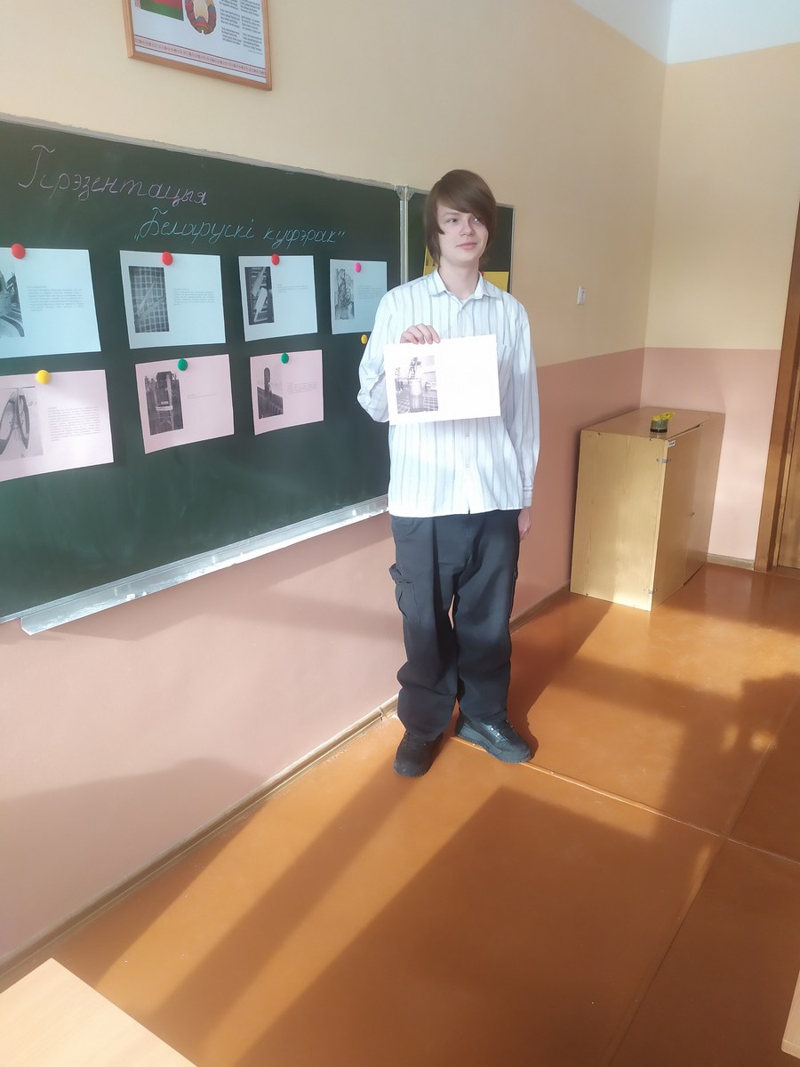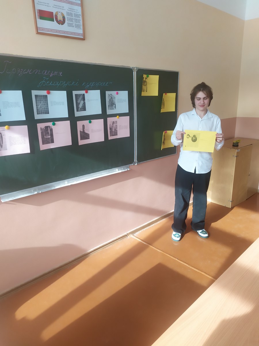 Сённяшнія школьнікі з цяжкасцю могуць уявіць побыт нашых продкаў. 12 лютага вучні 9 “А” класа паглядзелі, якімі прыладамі працы карысталіся нашы продкі, які посуд быў у сялянскай хаце. Найперш дзеці ўбачылі папярэдніка сучаснага электрычнага праса – вугальны. Дарэчы, апошні вугальны прас быў выпушчаны на Лідсельмашы не так даўно – у 1974 годзе. Таксама гледачы даведаліся пра качалку і рубель, пачулі, як пралі воўну, што такое матавіла, даведаліся, як збівалі масла. Асобная старонка прэзентацыі была прысвечана глінянаму і драўлянаму посуду.