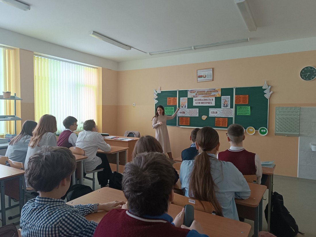 Восьмиклассники на занятиях «Чему можно доверять в Интернете? Дискутировали о том, что не вся информация в сети является достоверной, обсудили для чего создается фейковый контент, как не стать жертвой фейковой информации.
