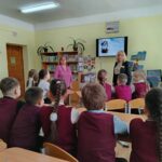 В завершение мероприятия заведующий библиотекой Потемкина В.А. предложила младшим школьникам посмотреть видеосюжет о подвиге подполковника Владимира Карвата.