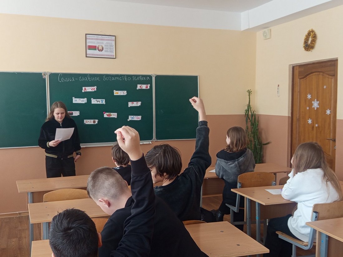 Учащиеся 7-х классов ответили на вопросы викторины «Дела семейные». Ребята узнали о происхождении слов «семья» и «супруги», почему невесты надевали платье белого цвета, который считался траурным, и когда отмечают зелёную свадьбу.