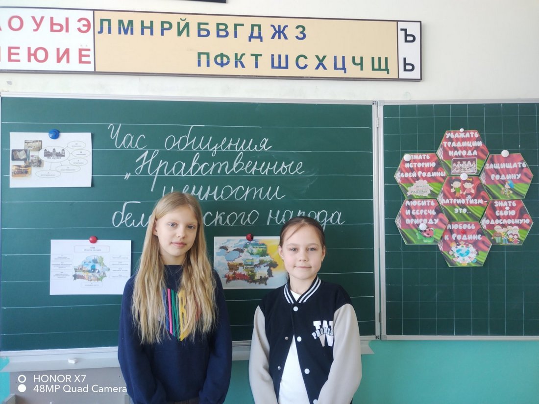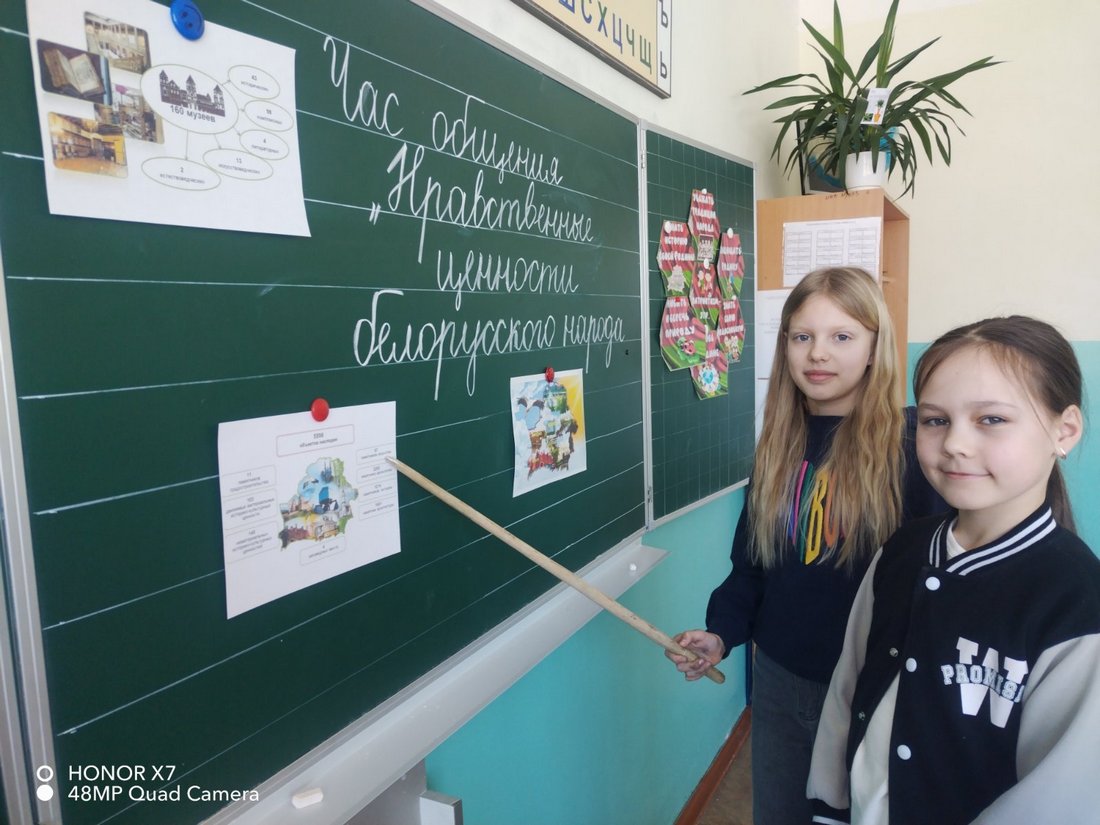 Для учащихся 4-х классов прошел час общения «Нравственные ценности белорусского народа». Ребята узнали о ценностях белорусского народа, на сколько они важны в жизни каждого белоруса.