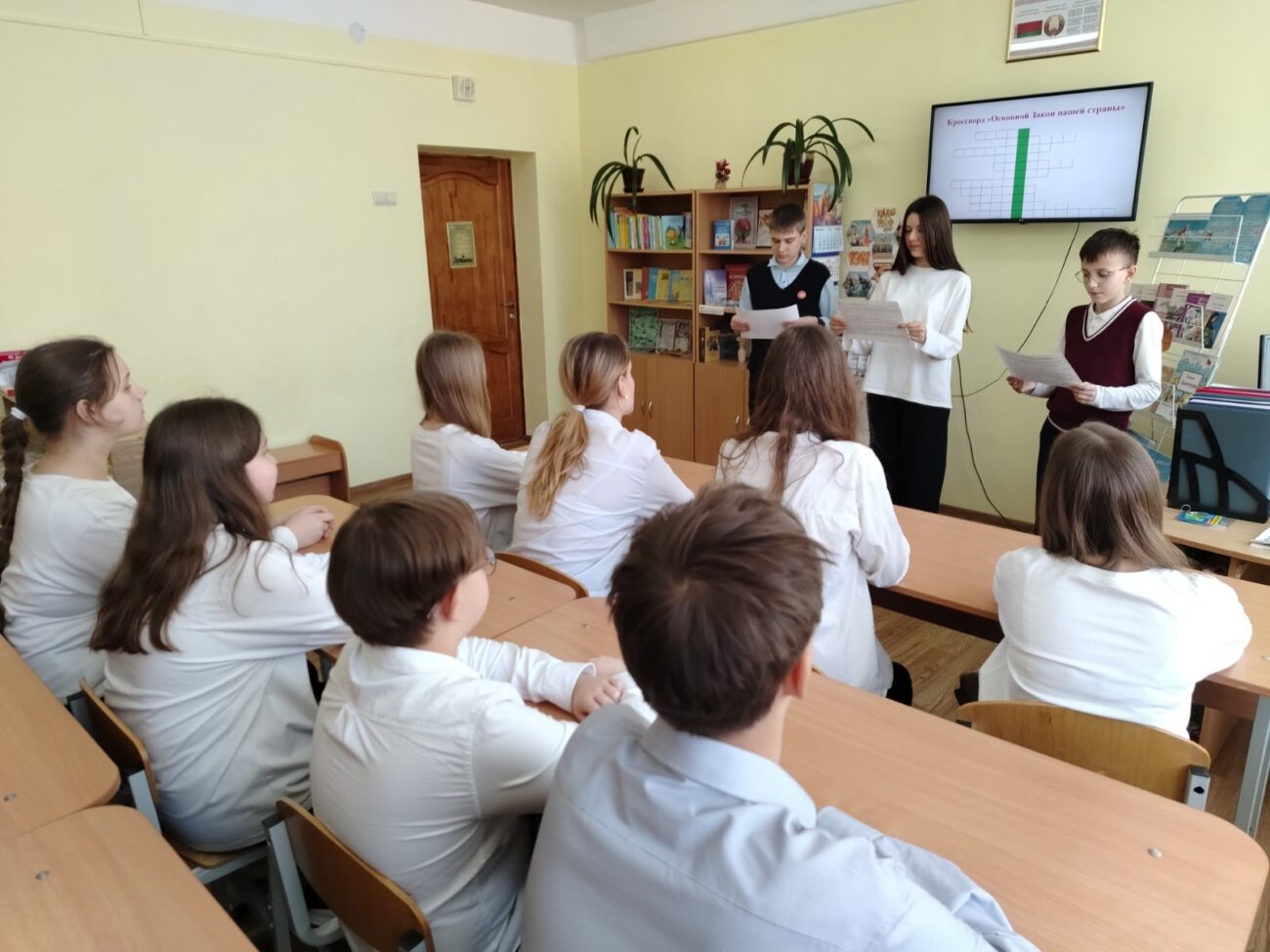 В преддверии государственного праздника 12 марта текущего года для учащихся 7 «А» класса нашей школы руководитель по военно-патриотическому воспитанию Ковалева А.Ф. провела правовой час «Конституция – Основной Закон Республики Беларусь».