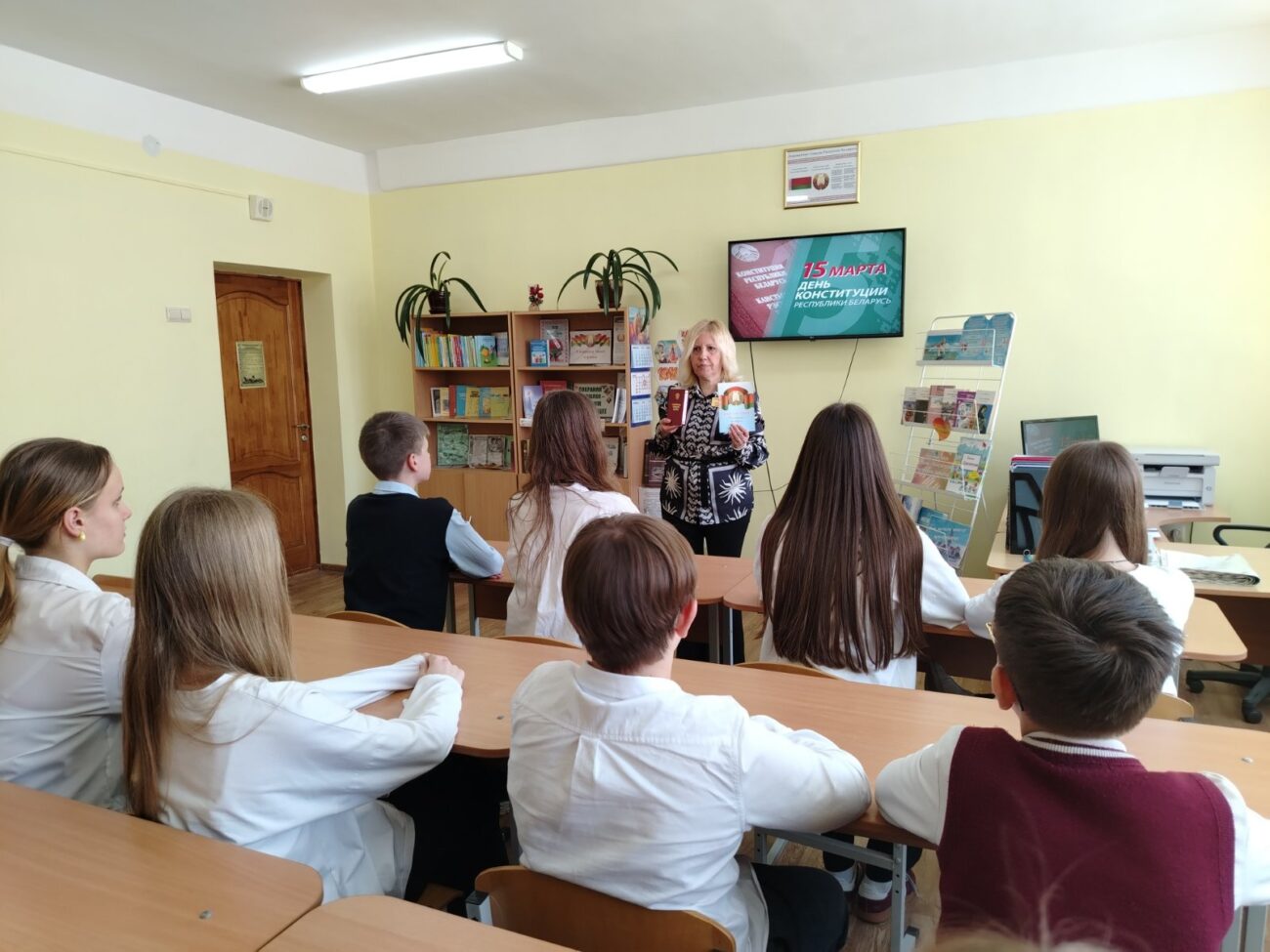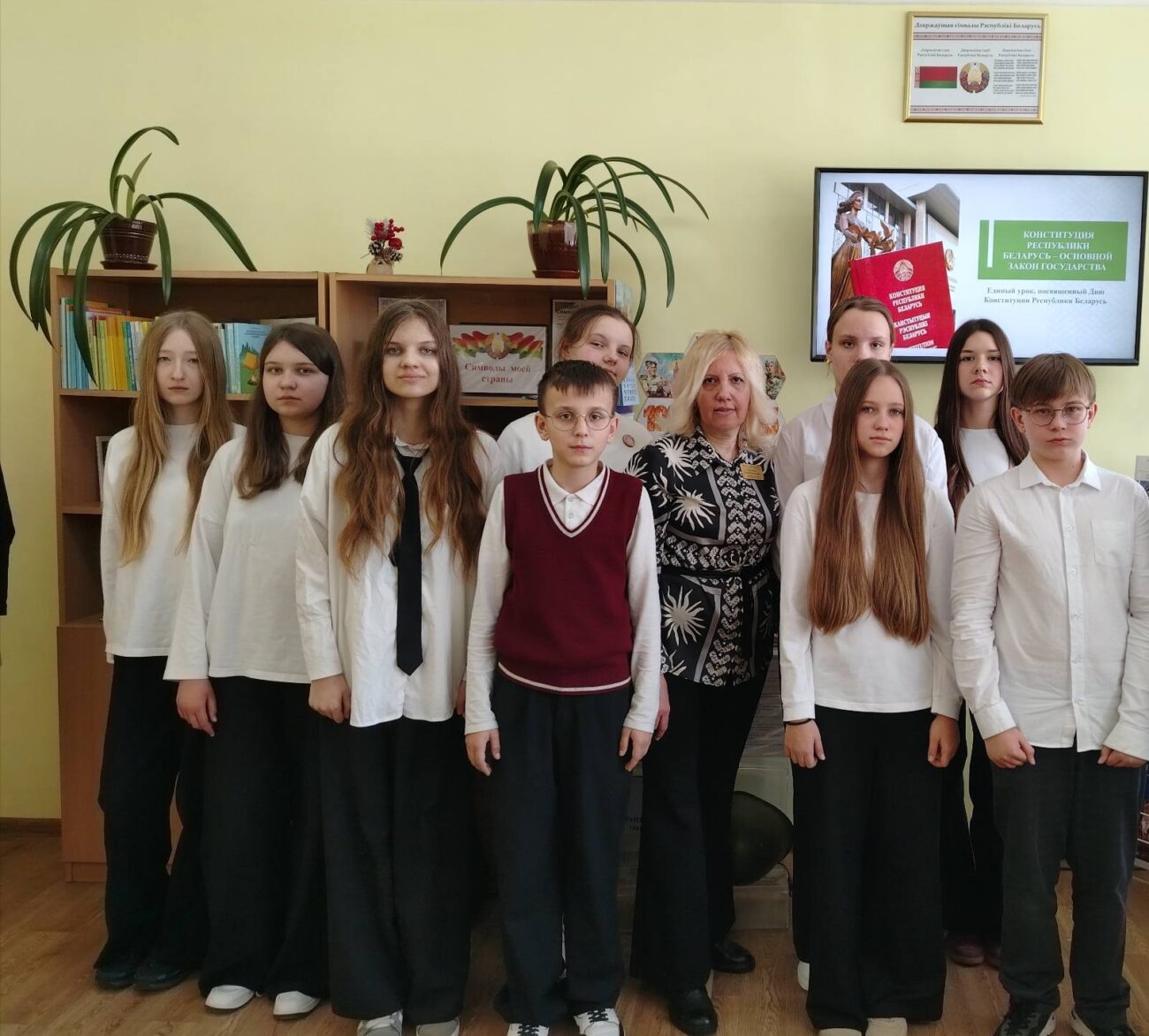 Педагог напомнила учащимся важность изучения Конституции как Основного Закона страны, ознакомила со структурой и содержанием Конституции Республики Беларусь, правами и обязанностями граждан Республики Беларусь.