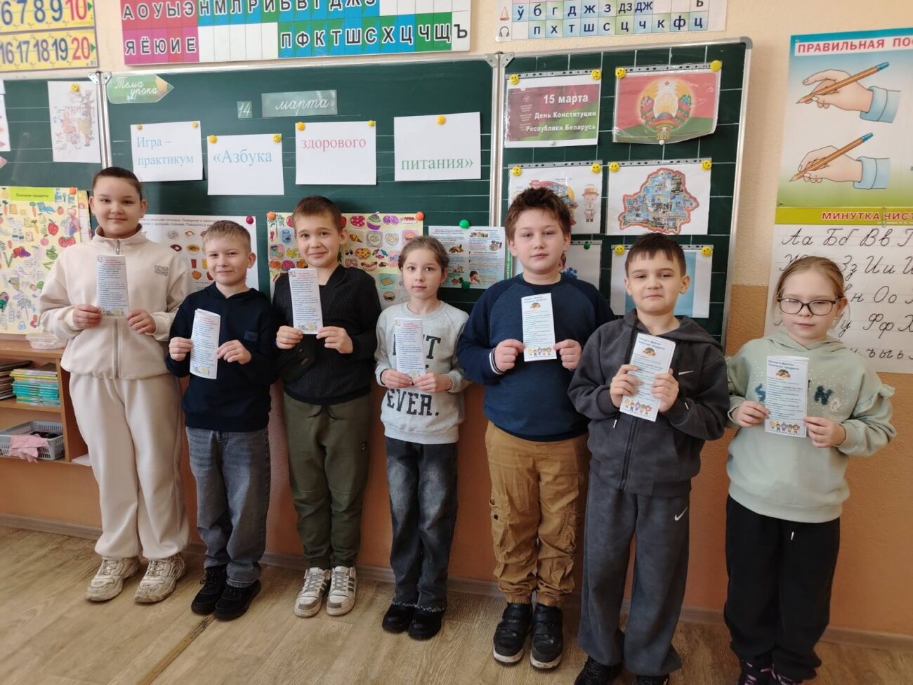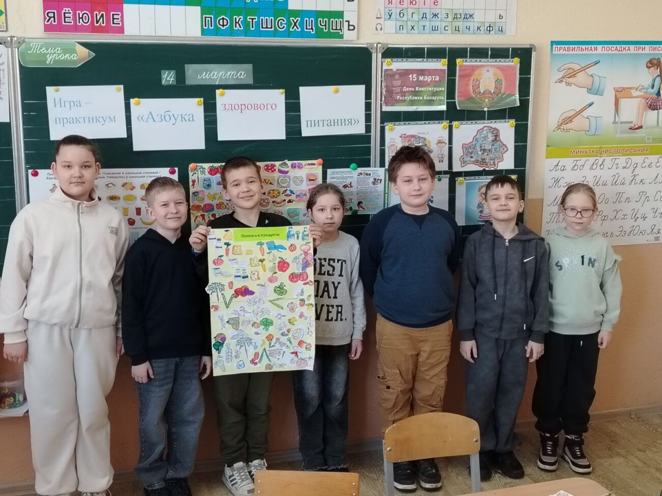 Третьеклассники приняли активное участие в интеллектуальной игре-практикуме «Азбука здорового питания». Участники подготовили свои сообщения о полезных продуктах питания, изготовили газету «Полезные продукты». Составили памятку о здоровом питании. Мероприятие прошло в позитивном настроении. Ребята узнали много интересных фактов об истории возникновения некоторых овощей и фруктов в Беларуси.