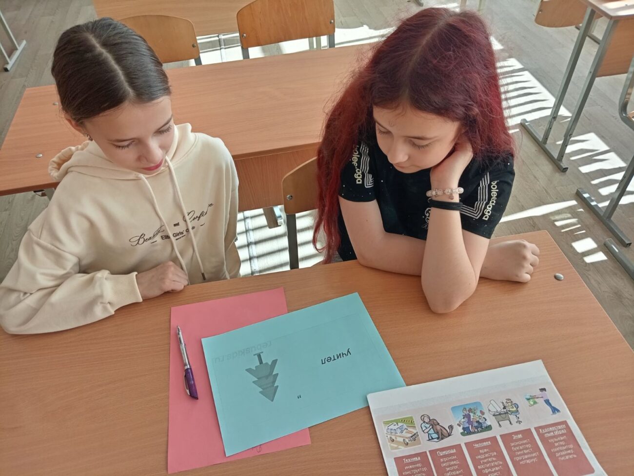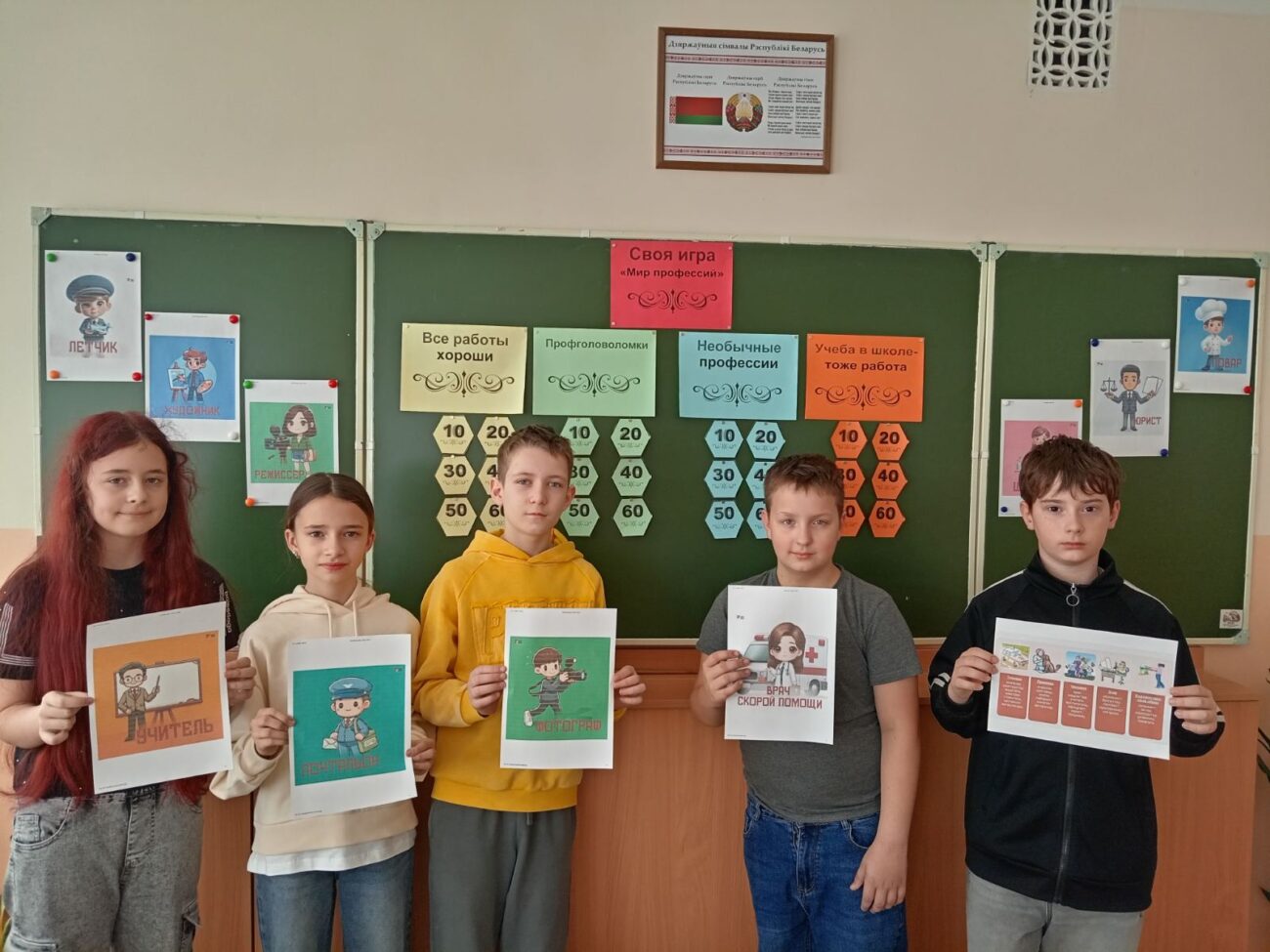 Учащиеся 5-х классов приняли участие в своей игре «Мир профессий». Ребята отвечали на вопросы рубрик «Всё работы хороши», «Профголоволомки», «Необычные профессии», «Учёба в школе — тоже работа». Игра помогла учащимся расширить знания о мире профессий, подтолкнула к размышлениям о собственных перспективах личностного профессионального самоопределения.