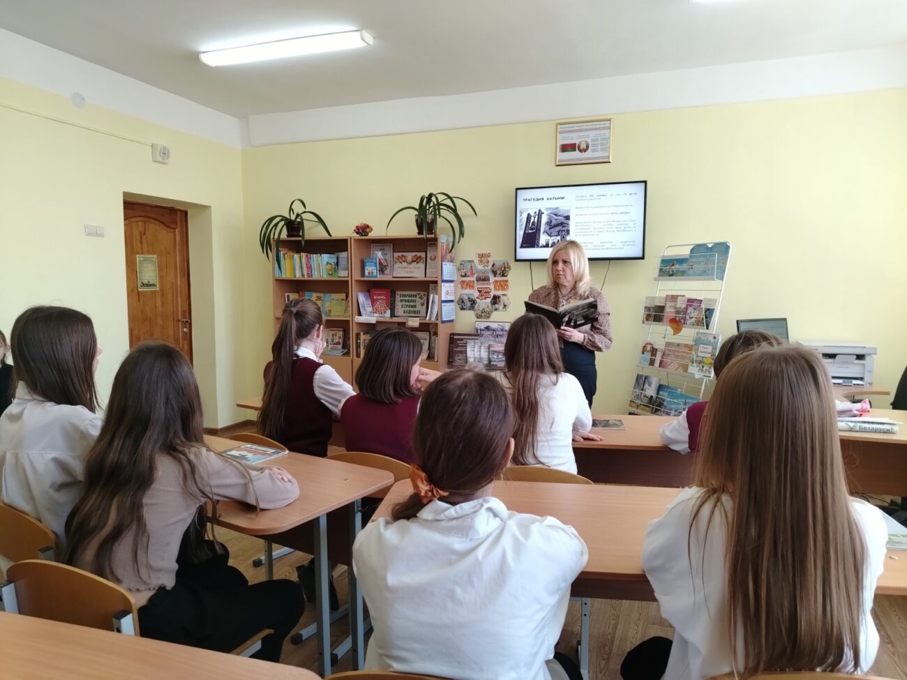 В рамках этого события руководитель по военно-патриотическому воспитанию Ковалева А.Ф. знакомила учащихся с историей Хатыни, геноцидом белорусского народа и последствиями войны для мирного населения.