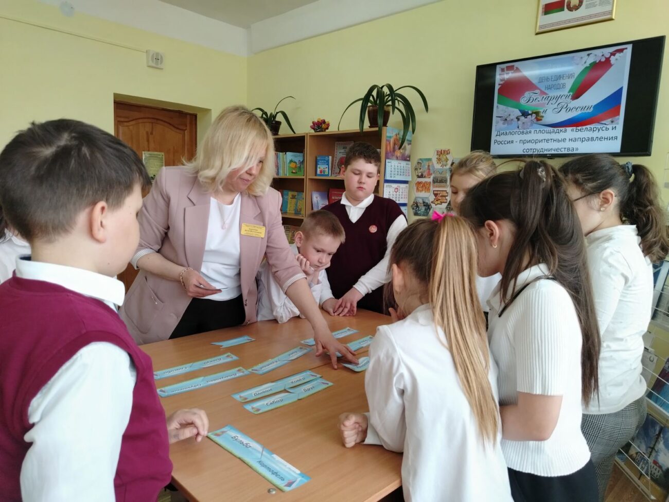Школьники совершили виртуальную экскурсию «Достопримечательности России и Беларуси», поучаствовали в интерактивной игре «Мы вместе», поработали с облаком слов и собрали пазл-карту.