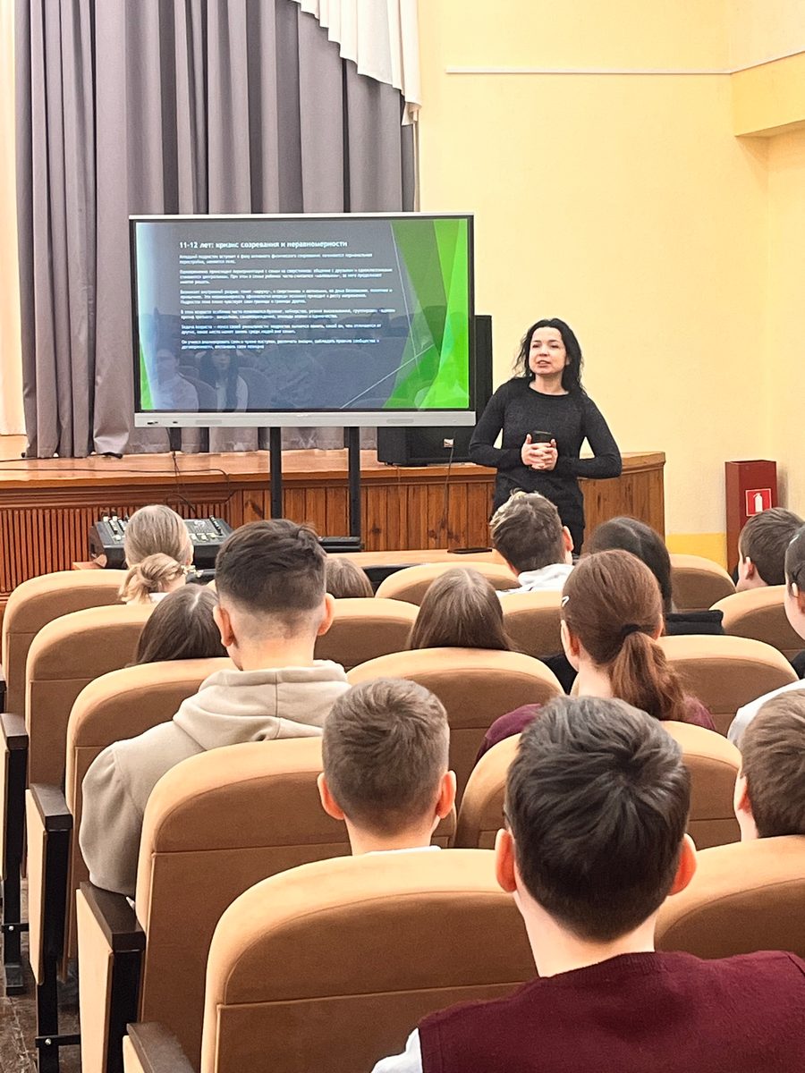 7 апреля состоялась встреча учащихся 9-10 классов с психологом Духовно-просветительского центра имени святителя Георгия (Конисского) Зубринович Натальей Георгиевной. Приглашенный гость рассказывал ребятам о жизненном пути, о кризисах и переломных моментах к жизни каждого человека, о способах преодоления этих кризисов, о тех ресурсах, которые помогают нам героически справляться с жизненными невзгодами, идти во линии судьбы с позитивом и верой в себя.