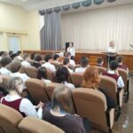 Руководитель по военно-патриотическому воспитанию Ковалева А.Ф. рассказывала учащимся о судьбах узников фашистских концлагерей. С помощью показа фрагментов из документальных фильмов, посвященных героизму участников сопротивления, старшеклассники воочию убедились в том, что бороться за жизнь и свободу даже в нечеловеческих условиях возможно.