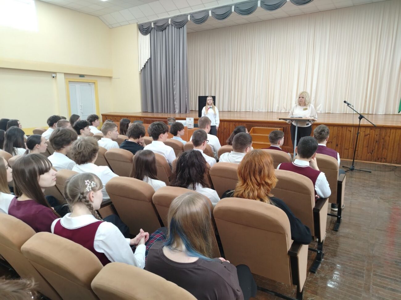 Члены актива пионерской дружины имени Валентины Ивановны Зенкиной-Сачковской зачитывали сохранившиеся показания выживших узников школьникам, чтобы молодое поколение глубже понимала цену мира и свободы.