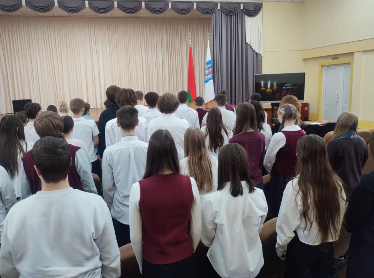 В завершение часа памяти юноши и девушки почтили память погибших людей минутой молчания.