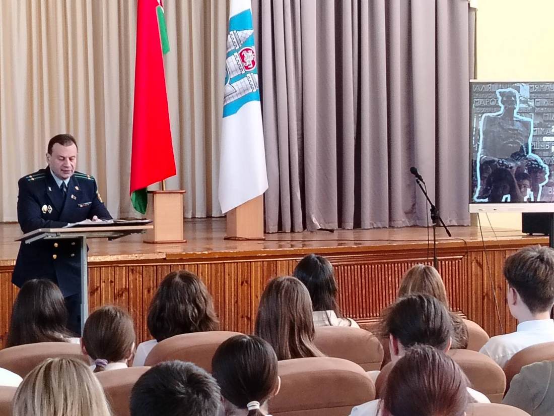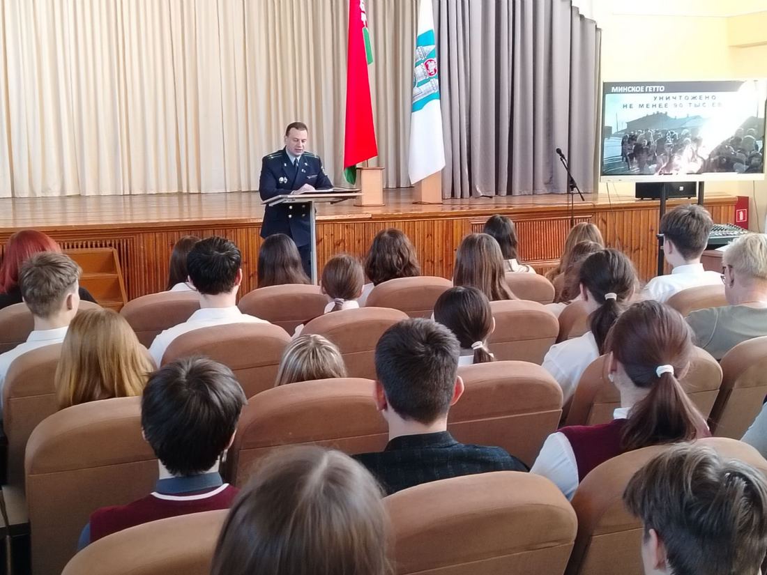 В ходе состоявшейся встречи со старшеклассниками заместитель прокурора г. Могилева Евгений Георгиевич подробно рассказал о причинах возбуждения уголовного дела о геноциде белорусского народа, результатах его расследования на сегодняшний день и связи времен.